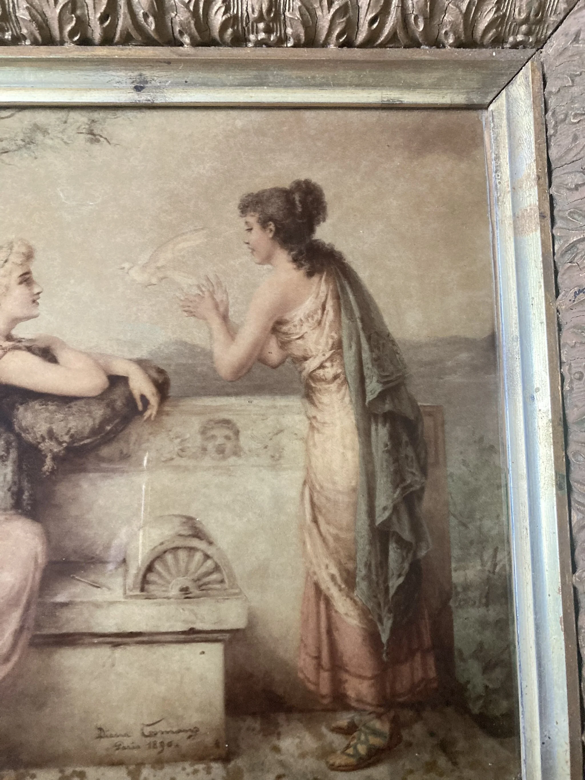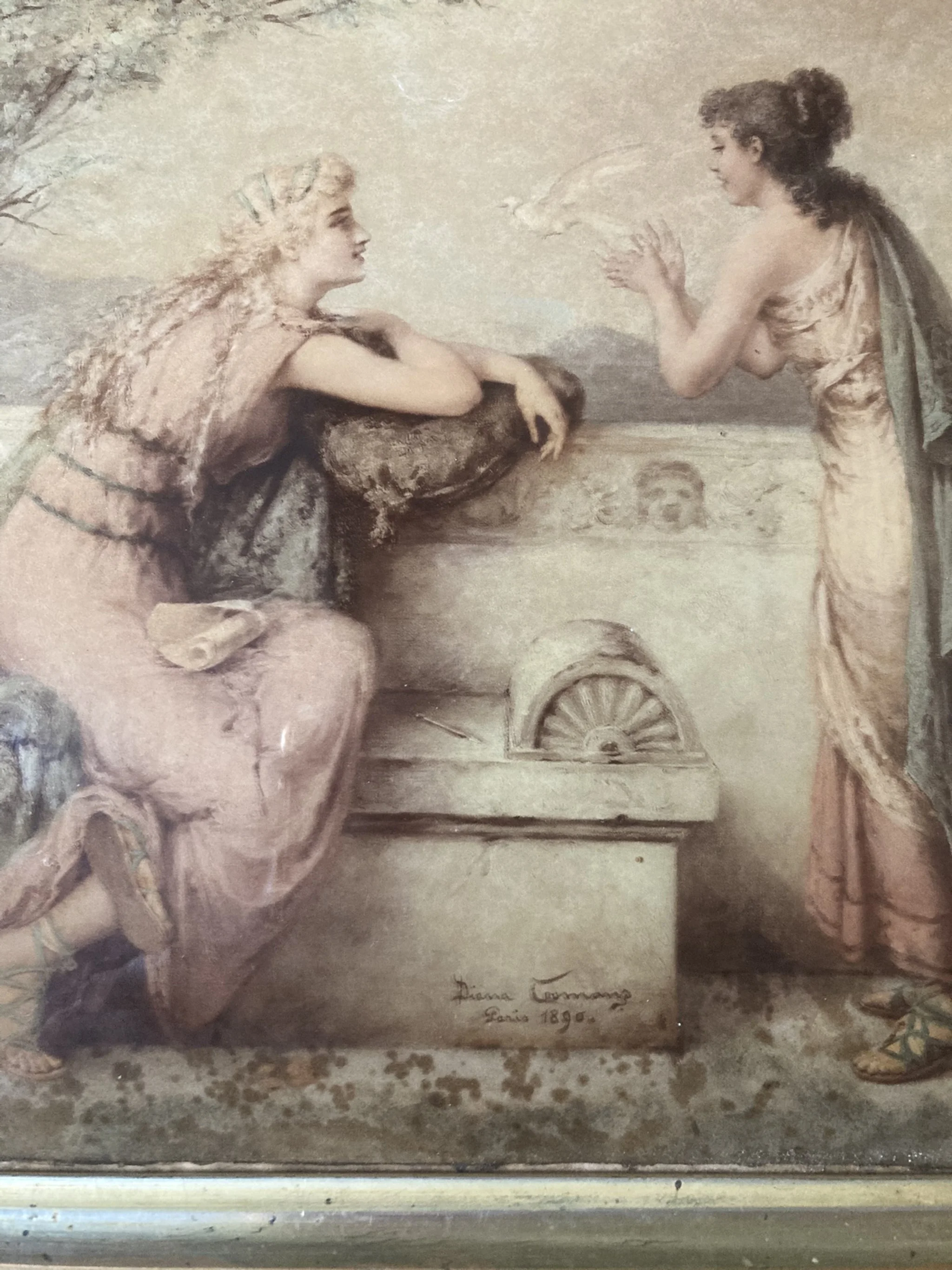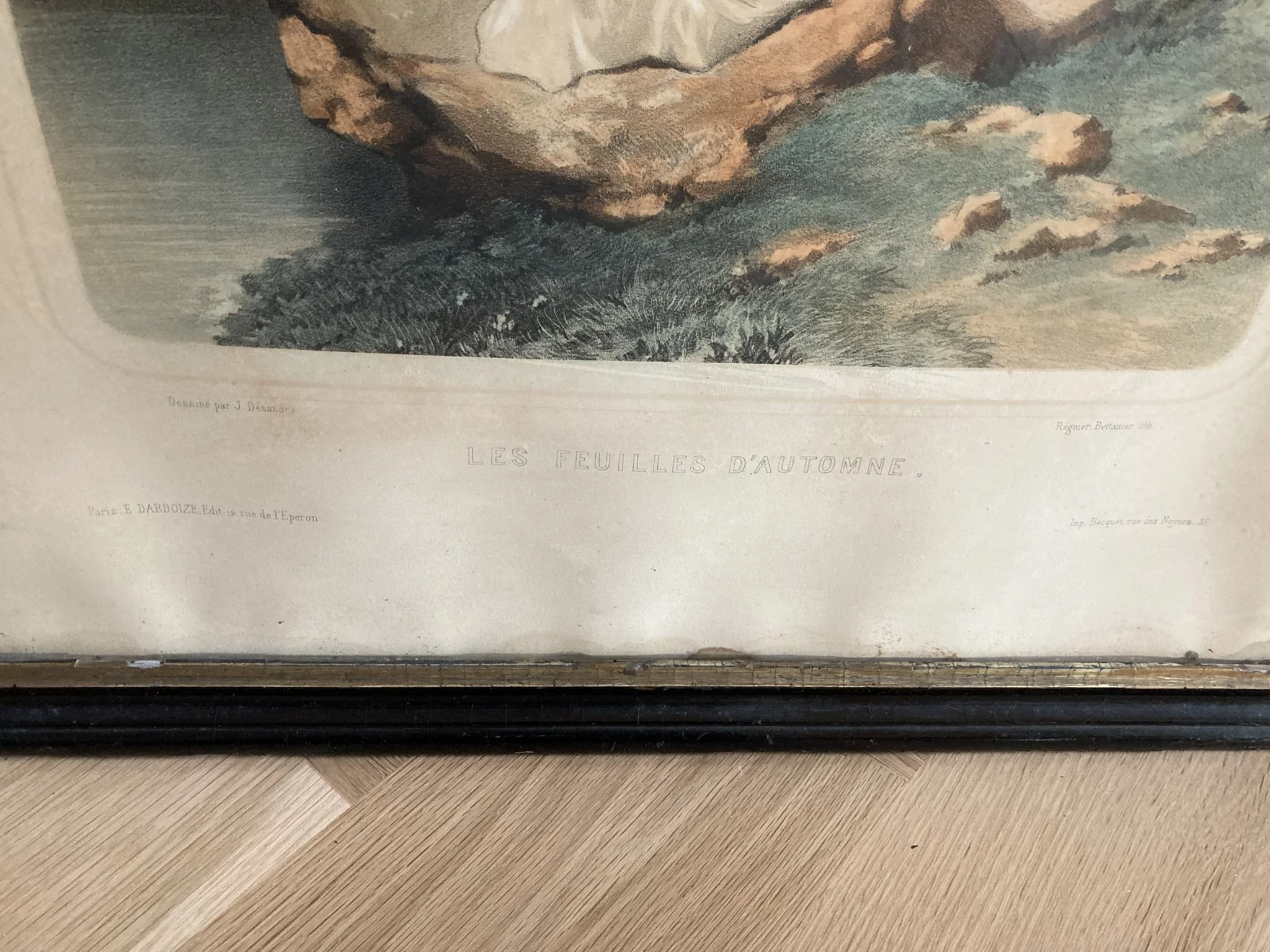 Categories: All Prints Sculpture Paintings Drawings & Pastels All | Prints | Sculpture | Paintings | Drawings & Pastels | Diana Coomans – “Le Messager de l'Amour” (1890) – Reverse Glass Artwork, Signed Les Feuilles d’Automne – After Jules-Marie Desandré (19th Century) | Original French Lithograph | Hand-Colored