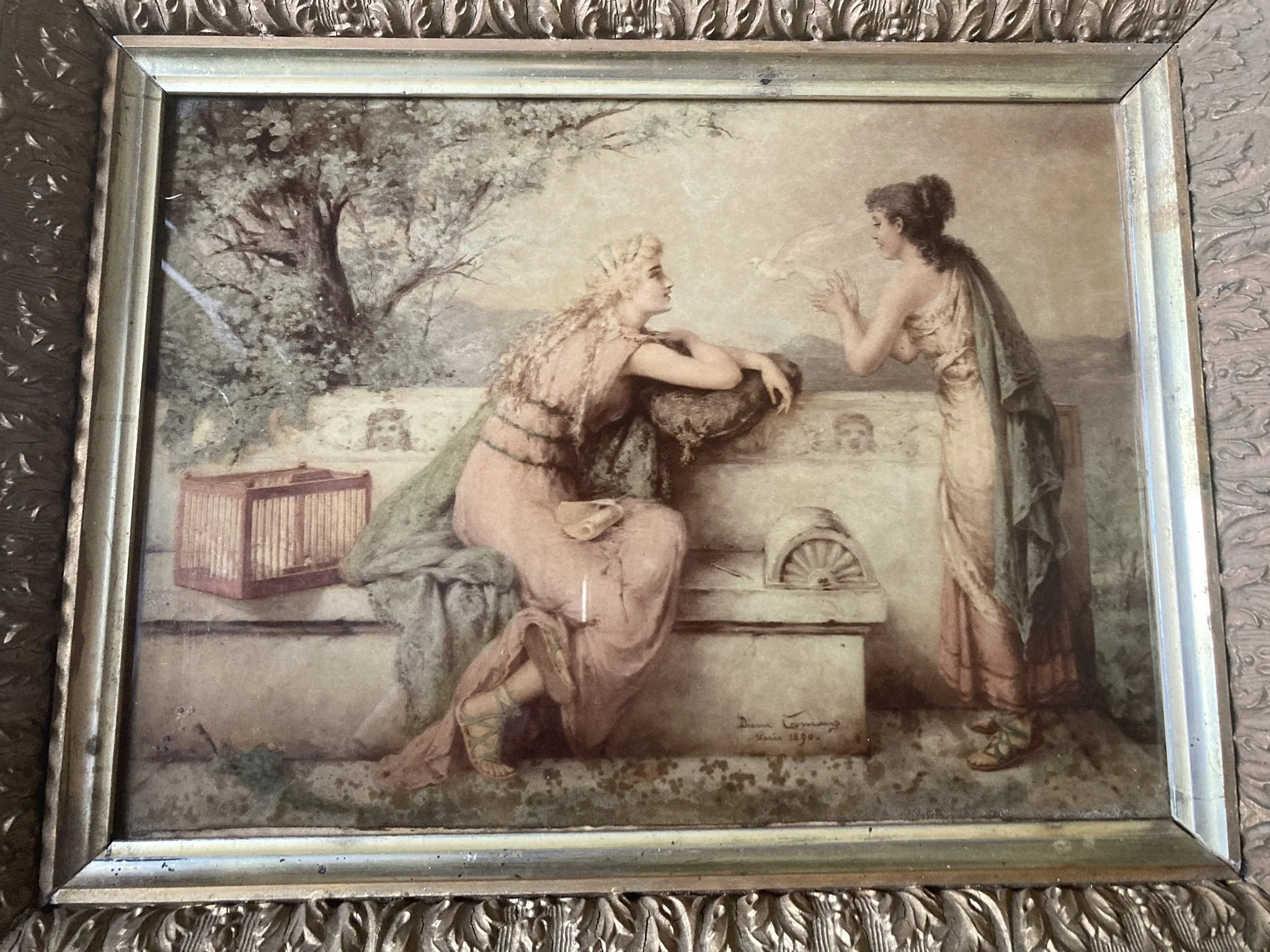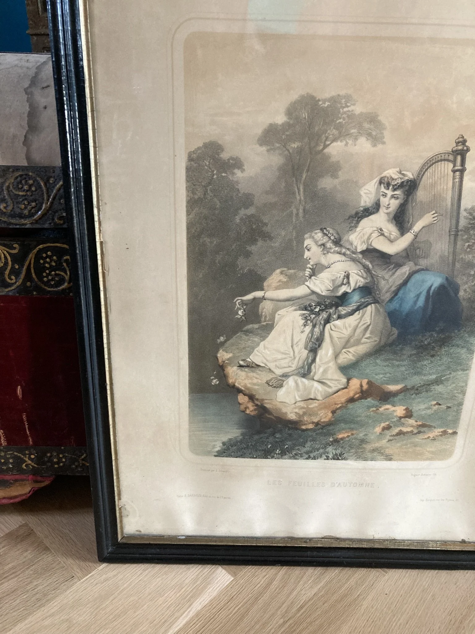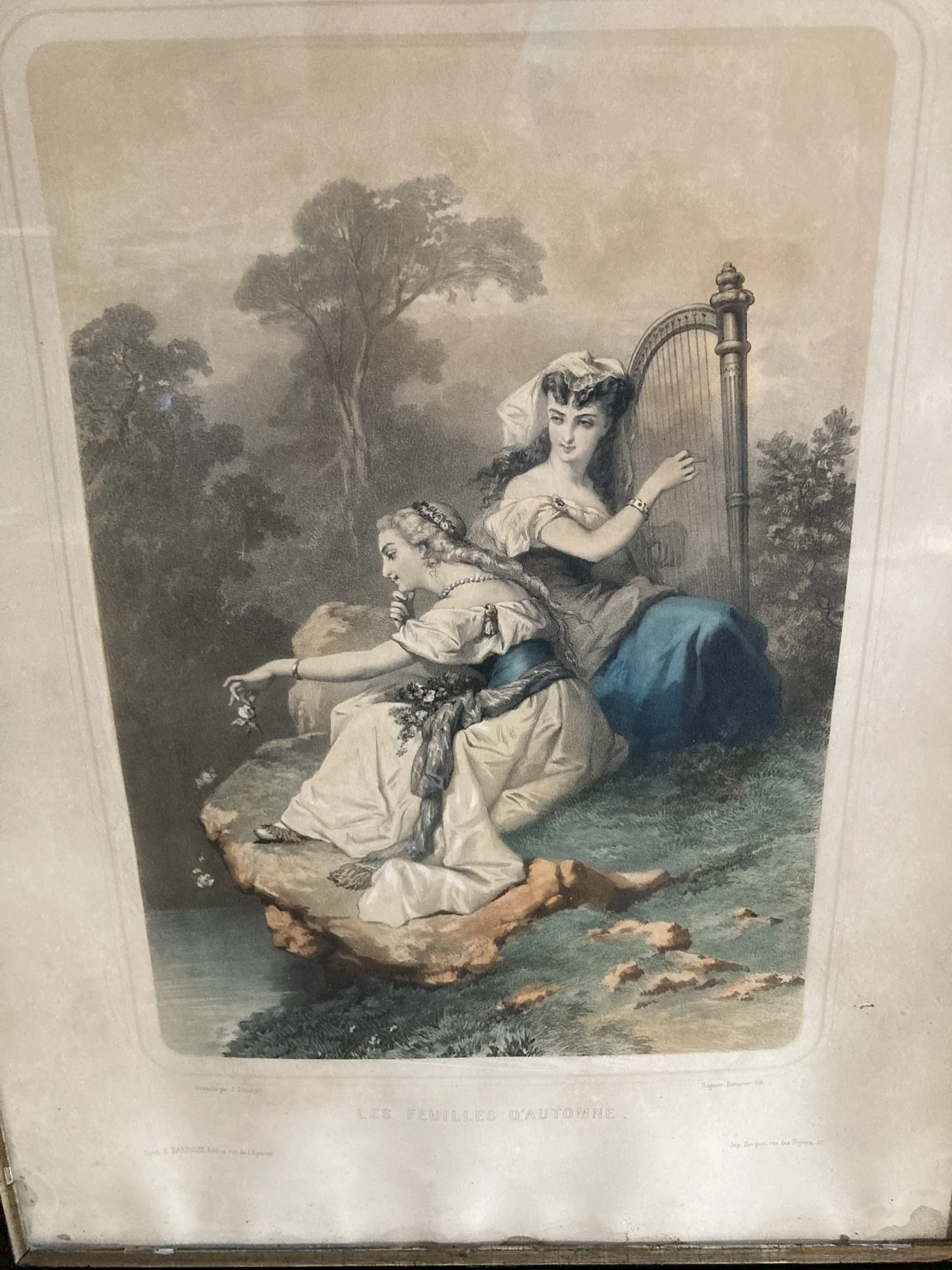 Categories: All Prints Sculpture Paintings Drawings & Pastels All | Prints | Sculpture | Paintings | Drawings & Pastels | Diana Coomans – “Le Messager de l'Amour” (1890) – Reverse Glass Artwork, Signed Les Feuilles d’Automne – After Jules-Marie Desandré (19th Century) | Original French Lithograph | Hand-Colored